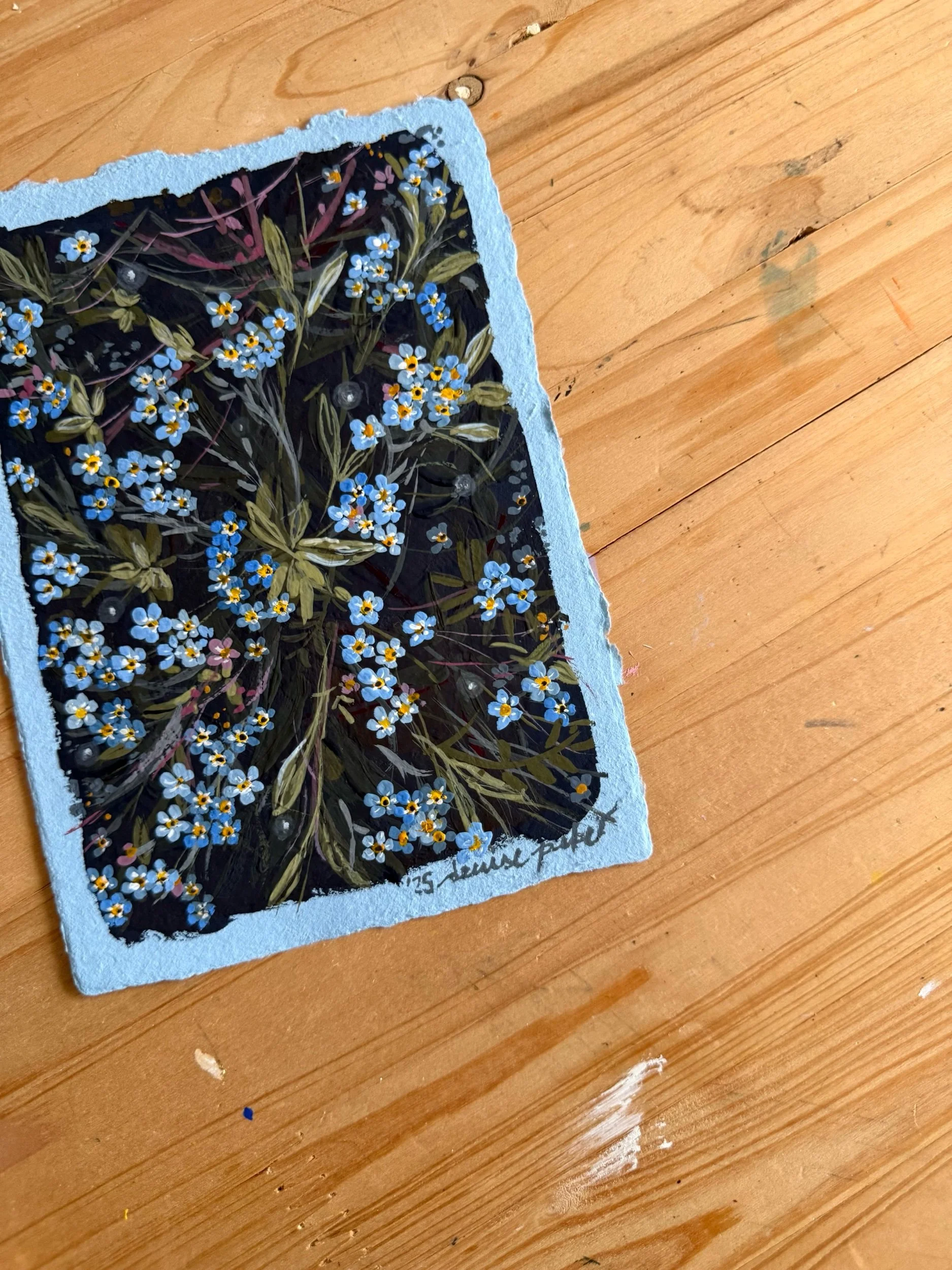 Painting comes with a guide on how to treat it. Signed front and back. Painting comes unframed. Gouache paintings should be framed under glass to keep them safe for generations. All original paintings are packaged in compostable cellophane sleeves to prevent them from getting wet and secured with cardboard to prevent them from bending.